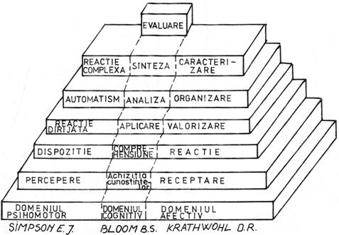 Din multitudinea modelelor, prezentam in figura 3.3 clasificarea obiectivelor educationale pe cele trei domenii si categorii taxonomice specifice fiecarui domeniu.