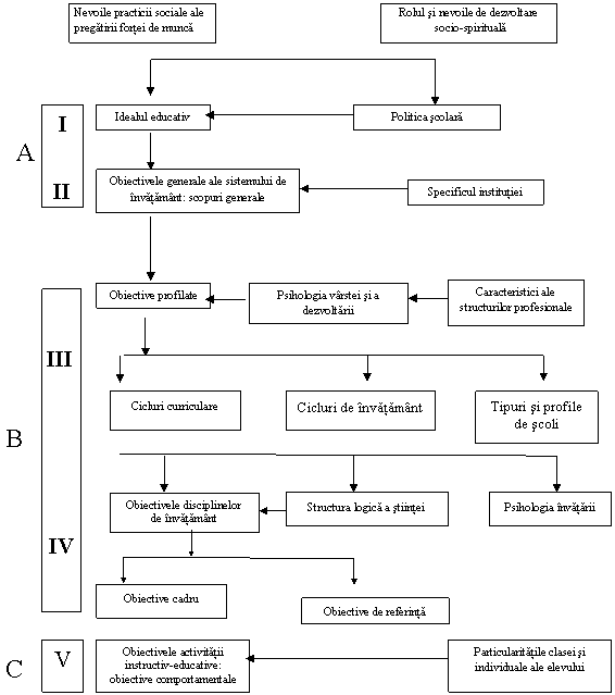 Din aceste obiective (BIII) sunt derivate apoi obiectivele BIV, respectiv obiectivele disciplinelor de invatamant.