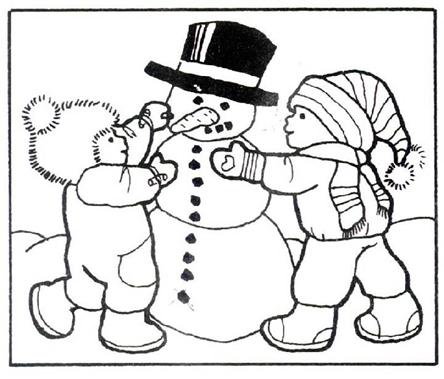 cu rosu perele, cu albastru fulgii si cu galben copiii.