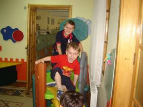 Si dupa ce portile se inchid in urma prichindeilor, vin slujitorii sa se prezinte:jucarii plusate , cuburi colorate, carti pline de culoare, creioane , pixuri, carioci si plastilina, litere si cifre imprastiate. Toate se inclina in fata celor mici , se prezinta si-i atrag pe curiosi, ademenindu-i cu priviri galese si glasuri dulci:"Alege-ma pe mine , ia-ma pe mine in brate , joaca-te cu mine!!" Micutii alearga de la unele la altele, le-ar alege pe toate pentru ca toate sunt tentante, dar usile marelui palat se deschid si apar niste zana bune care-i poftesc pe cei mici in sala care-i steapta. Acolo totul e gandit si ales cu chibzuinta pentru noii veniti:masute mici si colorate , scaunele jucause si patuturi moi si ademenitoare.