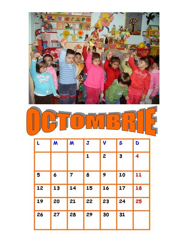 Completarea calendarului: Este o zi frumoasa de.....A inceput luna., este frig, iar frunzele copacilor incep sa ..una cate una formand un de frunze uscate.