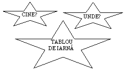 Se organizeaza colectivul de prescolari sub forma de semicerc, iar in mijlocul lor se aranjeaza stelutele. In mijloc este asezata o steluta mare, de culoare galbena, iar peste ea se aseaza imaginea mare ce reprezinta jocurile copiilor in anotimpul iarna. Celelalte 5 stelute mici se aseaza in jurul stelutei mari, atentionand copiii ca pe fiecare steluta este scrisa cate o intrebare, cu culori diferite. Intrebarile folosite sunt: CE?, CINE?, CUM?,CAND?, DE CE? Astfel, copiii vor retine ca intrebarea "CE?" este scrisa cu rosu, "CINE?" cu culoarea verde, "CUM?" cu culoarea galbena, "UNDE?" cu culoarea albastra si "DE CE?" cu culoarea portocalie. Craiasa Iarna, atingand cu o bagheta magica, alege 5 copii, care, la randul lor, isi aleg fiecare cate o steluta cu o intrebare. Pe rand, educatoarea le citeste intrebarea de pe steluta si le explica modul de lucru: fiecare copil ce si-a ales cate o steluta, isi alege alti 3 - 4 parteneri cu care formeaza o echipa. Trebuie sa gaseasca impreuna mai multe intrebari referitoare la imaginea prezentata, folosind intrebarea de pe steluta aleasa. |