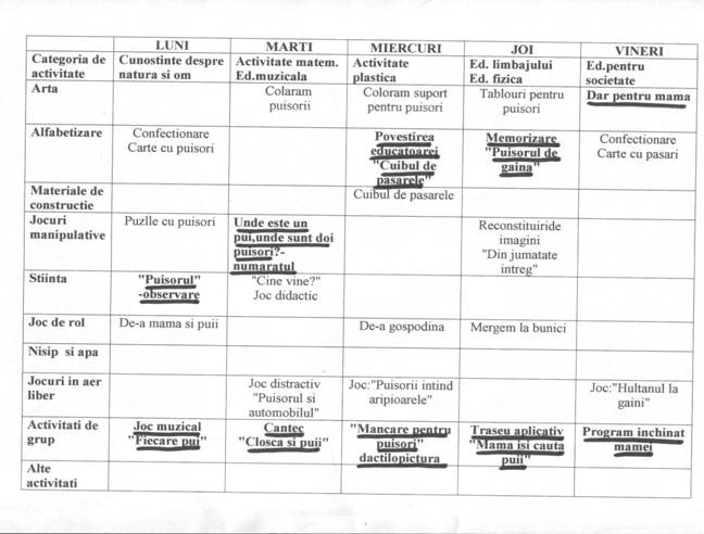 PLANIFICAREA ACTIVITATILOR DESFASURATE LA GRUPA