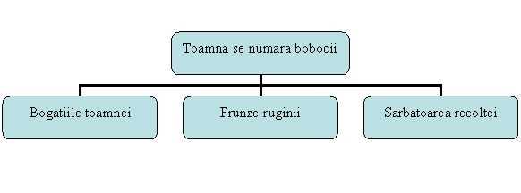 Toamna cad frunzele. Toamna ploua. Toamna se coc fructele si legumele. In fiecare toamna oamenii culeg roadele din gradini , livezi si vii . |