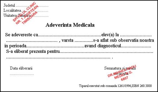ca:.sexul Nascut: 200luna..ziua...... Cu domiciliul in:jud. loc. .str. ..nr. Avand ocupatia de:.la Este suferind de:. Se recomanda S-a eliberat prezenta pentru a-i servi la:.