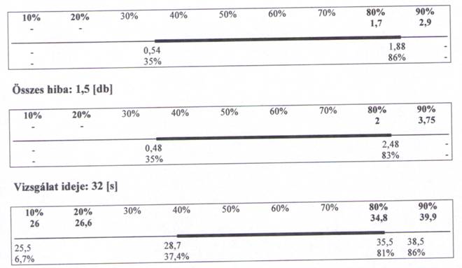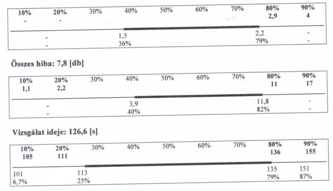 In primul rand apare numarul total al stimulilor administrati in timpul testului (Intotdeauna 96). In al doilea rand apare timpul total al testarii (timpul scurs de la aparitia primului stimul pana la efectuarea ultimei reactii).