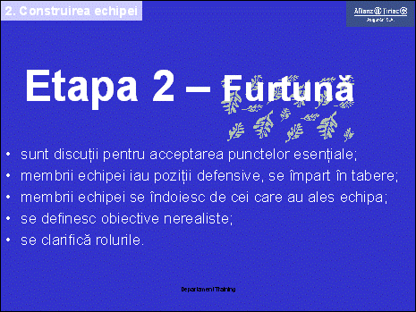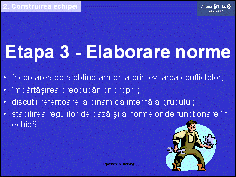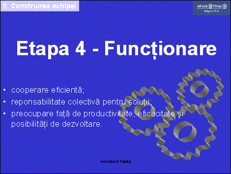Daca aceasta etapa este dirijata cu atentie, se poate ajunge la coeziunea echipei.