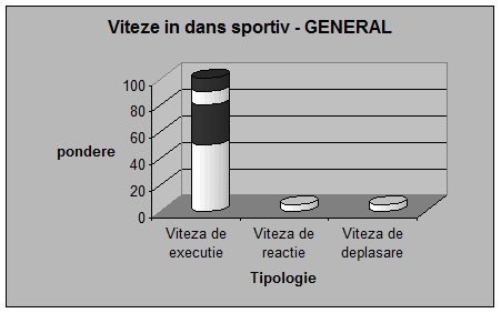 In dansul sportiv viteza de excutie a unei figuri pe un ritm dat este foarte importanta denotand o tehnica foarte bine pusa la punct. Daca ne gandim ca exista ritmuri care ajung la 50 BPM (batai pe minut) in dansurile latino-americane de exemplu (samba si jive) ajungem la concluzia ca un rol determinat aici il joaca fibrele musculare (ca si valsul vienez sau quickstep din sectiunea dansurilor standard). Mai precis elasticitatea acestora este principiul oricarei miscari in dansul sportiv, dupa exemplul unui resort sau a unui elastic: daca aceste sunt comprimate sau extinse foarte mult se creaza o forta de revenire direct proportionala ca capacitatea de deformare initiala - principiul actiunii si reactiunii. De aceea accentul se va pune in dansul sportiv pe marimea coeficientului de elasticiatea musculara si nu pe dezvolarea masei anumitor grupe de muschi. Studii stiintifice de specialitate au pus in evidenta existenta a doua tipuri de fibra musculara: rosii si albe, distributia lor fiind, se pare, stabilita genetic. Fibrele rosii, sau lente, au un continut mai mare de mioglobina (care actioneaza ca un depozit pentru oxigenul transportat de sange la celule) si sunt. Din punct de vedere biochimic, mai bine echipate pentru lucrul (rezistenta) aeroba. Pe de alta parte, fibrele albe sau repezi au un mare continut de glicogen (carbohidranti) si sunt mai bune in tipurile de eforturi anaerobe - specifice dansului sportiv - de scurta durata si intense (Fox, Bowes and Foss 1989; Willmore and Costill 1980). Procentajul de fibre musculare nu poate fi modificat, dar antrenamentele specifice intense pot mari randamentul fibrelor musculare si pot modifica structura lor biochimica. Posibilitatea stabiliarii proportiei fibrei musculare rapide (albe) exista prin procedeul numit biopsie - extragerea si analizarea unei probe de tesut muscular, poate ajuta antrenorul sa judece daca viitorul sportiv are inclinatie fizica spre dansul sportiv sau il poate indrepta catre sporturi in care predomina rezistenta.
