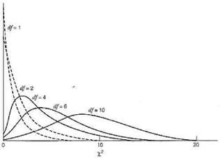 Daca inainte de ridicarea la patrat z urmeaza o distributie normala, dupa ridicarea la patrat z urmeaza un alt tip de distributie, numita "chi-patrat", simbolizata cu litera greceasca χ cu indicele de ridicare la patrat (χ2). Fara a intra in amanunte, vom preciza ca distributia χ2 prezinta urmatoarele caracteristici: |