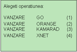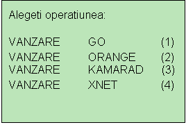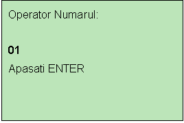 A. In cazul in care utilizatorul are drept de access ca operator terminalul afiseaza urmatoarele optiuni: