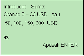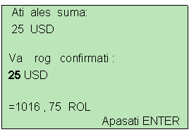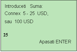 reintroducerea sumei (Ex: 25 USD) urmata de apasarea tastei ENTER.