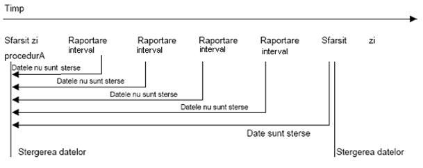 Raportare pe interval - Acest tip de raportare permite o analiza a tranzactiilor incheiate cu succes de la momentul realizarii ultimei proceduri de "Sfarsit de zi" realizata de catre operator pe terminal pana la momentul in care se genereaza raportul de interval. Pot fi realizate oricat de multe raportari pe interval intre doua proceduri de 'Sfarsit zi'. Datele necesare pentru realizarea rapoartelor nu sunt sterse iar cifrele vanzarilor raman cele curente.