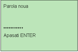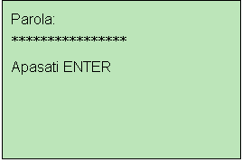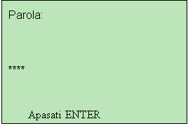 PASUL 2. Pe display-ul terminalului este afisat urmatorul ecran in care utilizatorul trebuie sa isi introduca parola de access proprie formata din 4 digiti si apoi sa apese tasta E (Enter).