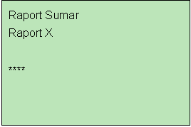 Daca se alege optiunea "Raport Sumar" terminalul va tipari pe rola de hartie termica raportul de interval pentru toti operatorii. Pentru optiunea tiparirii raportului de interval care sa contina doar tranzactiile operatorului respectiv, se apasa butonul de derulare in jos "▼" pentru selectarea tipului de raport "Raport X" si apoi se va apasa tasta E (ENTER). Dupa selectarea unui anumit tip de raport si apasarea tastei E terminalul va incepe tiparirea raportului.