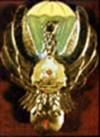 - pentru observatori, insigna reprezenta doua aripi de vultur ridicate si unite intre ele prin stema heraldica a tarii, avand deasupra coroana regala.