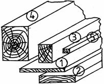 scanduri; 2. dulapi; 3. rigle; 4. grinzi; 5. Sipci