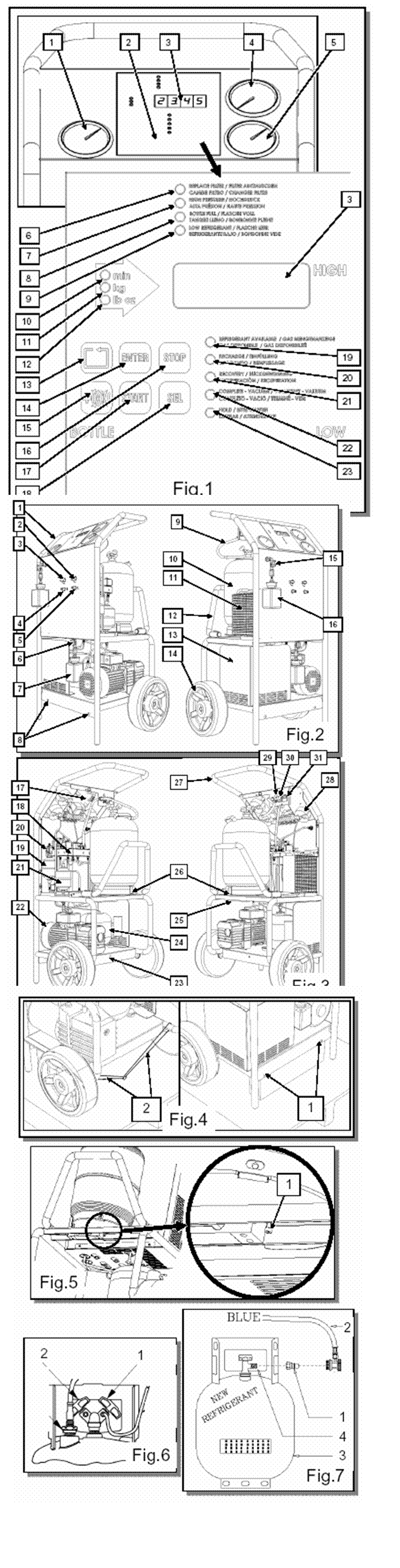 8. Bottle Full: se aprinde si emite un semnal acustic cand butelia de refrigerant este plina in proportie de 80%, adica 10,9 kg. Operatiunea de recuperare este intrerupta automat, imediat.