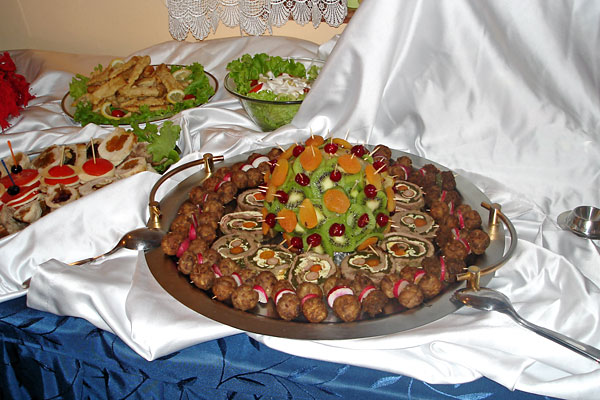 -mancaruri: peste prajit, gijon, snitel, ficat, mititei, in foietaj, sarmalute, tochitura, friptura de porc, vaca, vitel,miel, pasare, dezosata in transe mici etc.