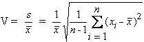 2.2. Coeficient de variatie - raportul V intre abaterea patratica experimentala, s, si media aritmetica, x, a unui ansamblu de n valori ale marimii xi, (unde xi este doza sau debit de doza), dat de formula urmatoare: