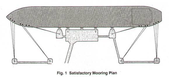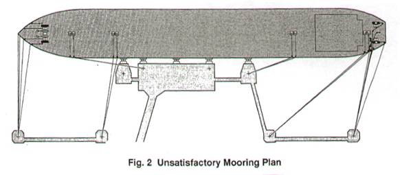 Diagrama de mai jos (Fig.1) descrie un sistem de amarare bine echilibrat unde geometria paramelor de amarare de la fiecare capat al navei este oglindit. In studierea acestui desen trebuie sa facem referire si la diagrama urmatoare (Fig.2) unde sunt explicate calitatile mai mici.