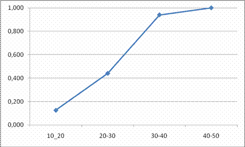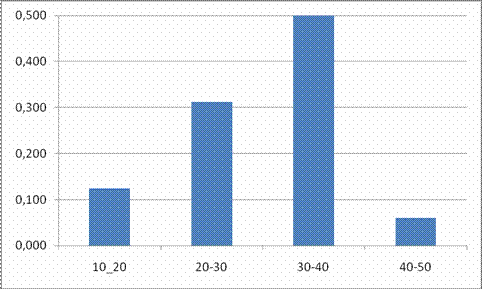 iar intervalele vor fi: 10 - 20%, 20 - 30%, 30 - 40%, 40 - 50%.