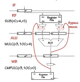 Se adauga cai speciale, numite BYPASSES (ocoliri), care dirijeaza rezultatele de la nivelul ALU si WB la nivelul RF.
