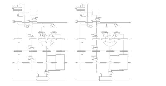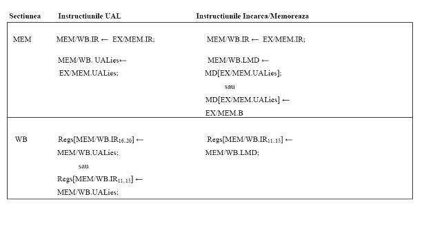 La nivelurile ALU si Memory se observa existenta multiplexoarelor pentru selectia instructiunii, avand drept intrari: