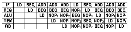 NOP este inserat la nivelul IF cand instructiunile sunt anulate in ramificatia de intarziere din cauza unei ramificatii deja luate sau cand se goleste banda de asamblare din cauza unei erori la nivelul ALU sau MEM.