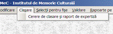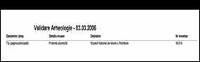 b. Din meniul Rapoarte pe toate fisele se alege domeniul de patrimoniu si in cadrul domeniului selectat se cauta inregistrarea dorita (cu ajutorul cursorului de pozitie din partea de jos a ecranului). Fisa este vizualizata fata la o pozitie, si verso la urmatoarea pozitie). Pentru printare se acceseaza meniul Fisier-> Tipareste - Rapoarte, precizandu-se paginile ce urmeaza sa fie printate. Daca nu sunt specificate, vor fi printate toate fisele de evidenta aferente domeniul cultural respectiv.