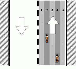 "pista din dreapta" (partea dreapta) este a patra pista din stanga. Cele doua piste laterale (prima si a cincea) sunt folosite ca