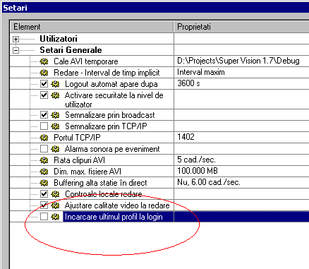 La logarea unui utilizator, se poate incarca automat ultimul profil folosit daca se face o setare corespunzatoare in setari generale: (optiunea inconjurata cu rosu trebuie sa fie bifata - Incarcare ultimul profil la login).