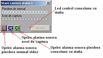 Acest modul permite vizualizarea starii caneleor video la distanta (erori de captura, pierdere de semnal video, pierdere conexiune cu statia). Fereastra de stare arata ca mai jos: