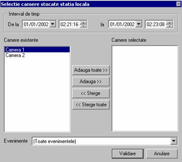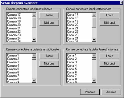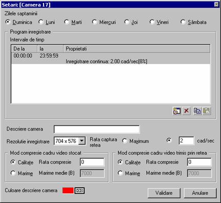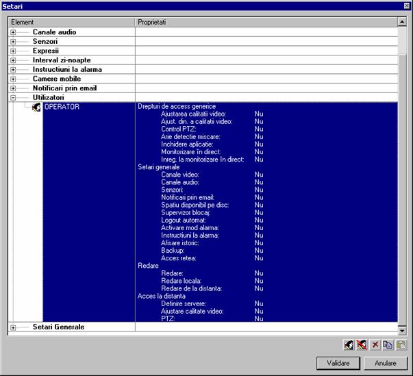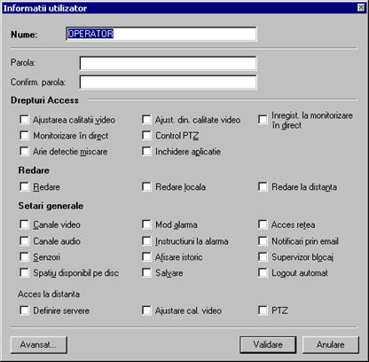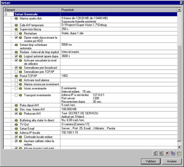 o Setari: - Setari generale (Cale AVI temporare, Redare-Interval de timp implicit, Logout automat, Afiseaza antet camere, Acces retea)
