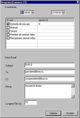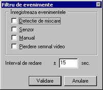 Obs. Orice eveniment detectat in Modul alarma pe criteriile selectate pentru camera respectiva trebuie supervizat de utilizator. Evenimentele ulterioare sunt conditionate de acesta, ele nefiind luate in considerare pana la rezolvare primului eveniment.