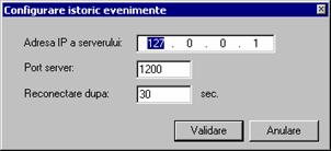 Declansarea modului alarma va afisa urmatoarele ferestre: