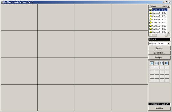 Acest mod permite editarea unui profil nou. Pentru a adauga referinta noua, pur si simplu se drag and drop camera respectiva intr - un loc pe grid - ul afisat. Pozitiile sint memorate in acest profil. De asemenea, in zona de butoane din dreapta - jos vor fi marcate indecsii camerelor care se vor depune pe grid.