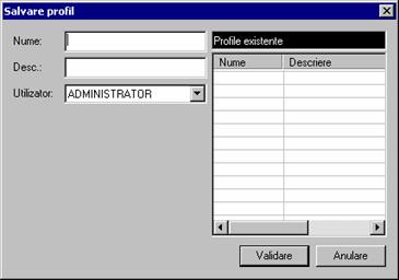 Este disponibila functia de salvare. Daca utilizatorul curent este administratorul, atunci profilul se poate salva si sub alt utilizator prin intermediul dialogului urmator: