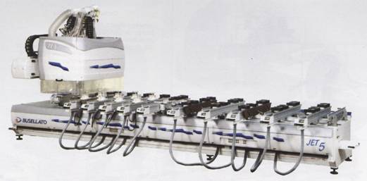 Componenta masinii: are un grup de blocare a piesei cu vid, 5 ventuze 140x114, 5 ventuze 125x75 pentru piesele inguste, o pompa de vid 100 mc/h actionata de un motor electric de 2,2 kw. Un dispozitiv de ridicare a panourilor cu 4 bare cu actionare pneumatic automata, faciliteaza operatiile de incarcare si ridicare a panourilor de mari dimensiuni.