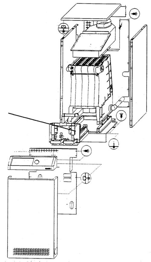 6. Cazanul nu poate porni - decuplati termostatul de siguranta (pe tabloul de comanda se semnalizeaza supraincalzirea) |