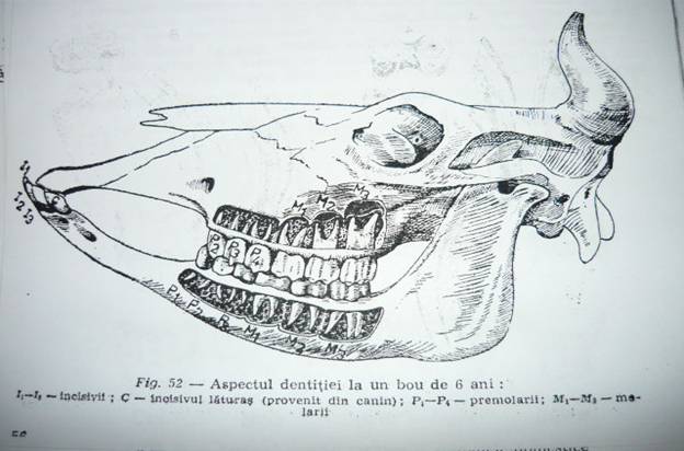 La manz clestii apar intre 6 - 12 zile, concomitent cu premolarii de lapte, iar mijlocasii erup intre 30 - 40 zile. La bovine, formula dentara de tinerete cuprinde 20 dinti. Incisivii superiori libsesc la rumegatoare, fiind inlocuiti de un burelet incisiv , o ingrosare de forma semilunara a mucoasei plafonului.