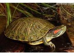 Este una dintre speciile cel mai des intalnite. Este o specie de talie mijlocie, la nastere masurand 3-4 cm, iar ca adult 20-25 cm. La tineret, culorile carapacei sunt intense (partea dorsala e verde si brazdata de linii galbene si negre). Pe tample se afla doua linii rosii, de unde si denumirea sa. Pe masura inaintarii in varsta, culorile se inchid, putandu-se observa de asemenea, o crestere exagerata a ghearelor.