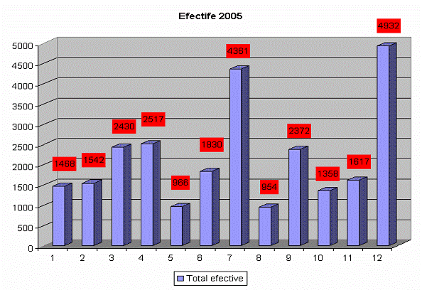 Coloanele cu valori ridicate din tabloul efectivelor ( 7 si 12 ) reprezinta doua situatii mai deosebite: prima se datoreaza extinderii ariei de monitorizare cu ocazia programului "Parfum de plante rare in Maramures", ca si ghid al unei echipe belgiene, iar a doua situatie reflecta invaziile cocosari (Turdus pilaris) de la sfarsitul anului. Alte explicatii pot fi gasite in lucrarea "Cronici ornitologice", iar observatiile ornitologice mai speciale le puteti gasi pe ultima pagina a revistei intr-un caiet ornito-special.