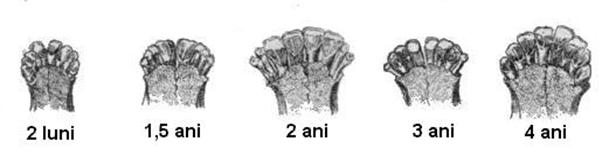 Aprecierea varstei dupa dentitie se bazeaza pe studiul incisivilor corelat cu momentul aparitiei premolarilor si molarilor.