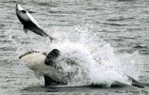 Cele mai apropiate rude ale delfinilor sunt cetaceele de dimensiuni uriase, printre care balena si uriasa balena ucigasa (orca), spaima marilor, ataca focile si delfinii