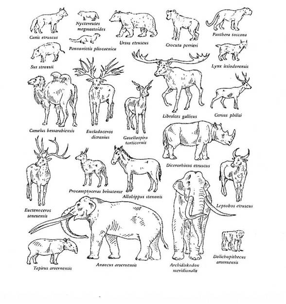 Fig. 80 - Fauna ViUafranchiana de mamifere din Europa centrala (dupa E. Thenius, 1962)