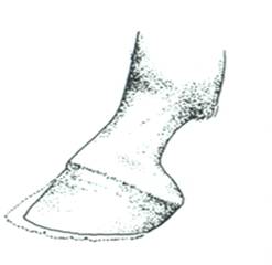 Taierea cornului se refera la scurtarea unghiei cu ajutorul clestelui si curatarea tavanului cu ajutorul renetei (Fig. 20.) sau cutitoaiei. Deobicei varful copitei creste mai repede decat calcaiul, in concluzie se poate taia mai mult din varf dar pentru siguranta, potcovarul are ca reper dunga alba de care nu trebuie sa treaca. La ajustarea calcaielor se va avea ca reper furcuta, nivelul calcaielor nu trebui sa fie sub nivelul furcutei. Calcaiul trebuie sa sustina piciorul fara sa se lase in spate (Fig. 21.).