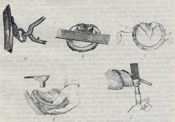 a) taierea cornului; b) finisarea copitei cu raspelul; c) aplicarea potcoavei;