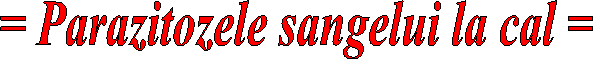 Cele mai cunoscute parazitoze sangvine ale calului sunt: Babesioza, Nutalioza, Durina si Parafilarioza. In continuare ele vor fi diferentiate in functie de: - epidemiologie