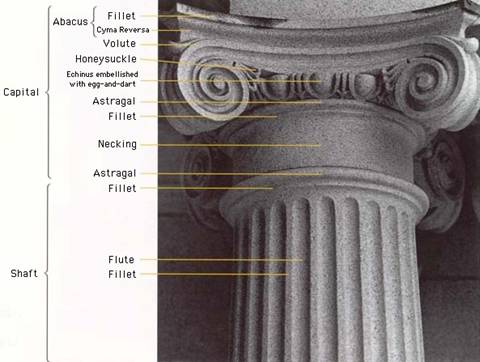 Colana Ionica : se sprijina pe baza in timp ce capitelul are forma unei volute duble