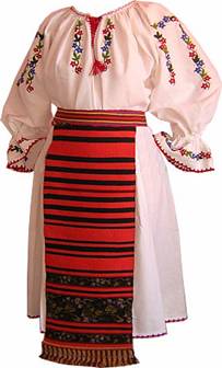 Peste surt, mijlocul este incins cu un brau tricolor.
